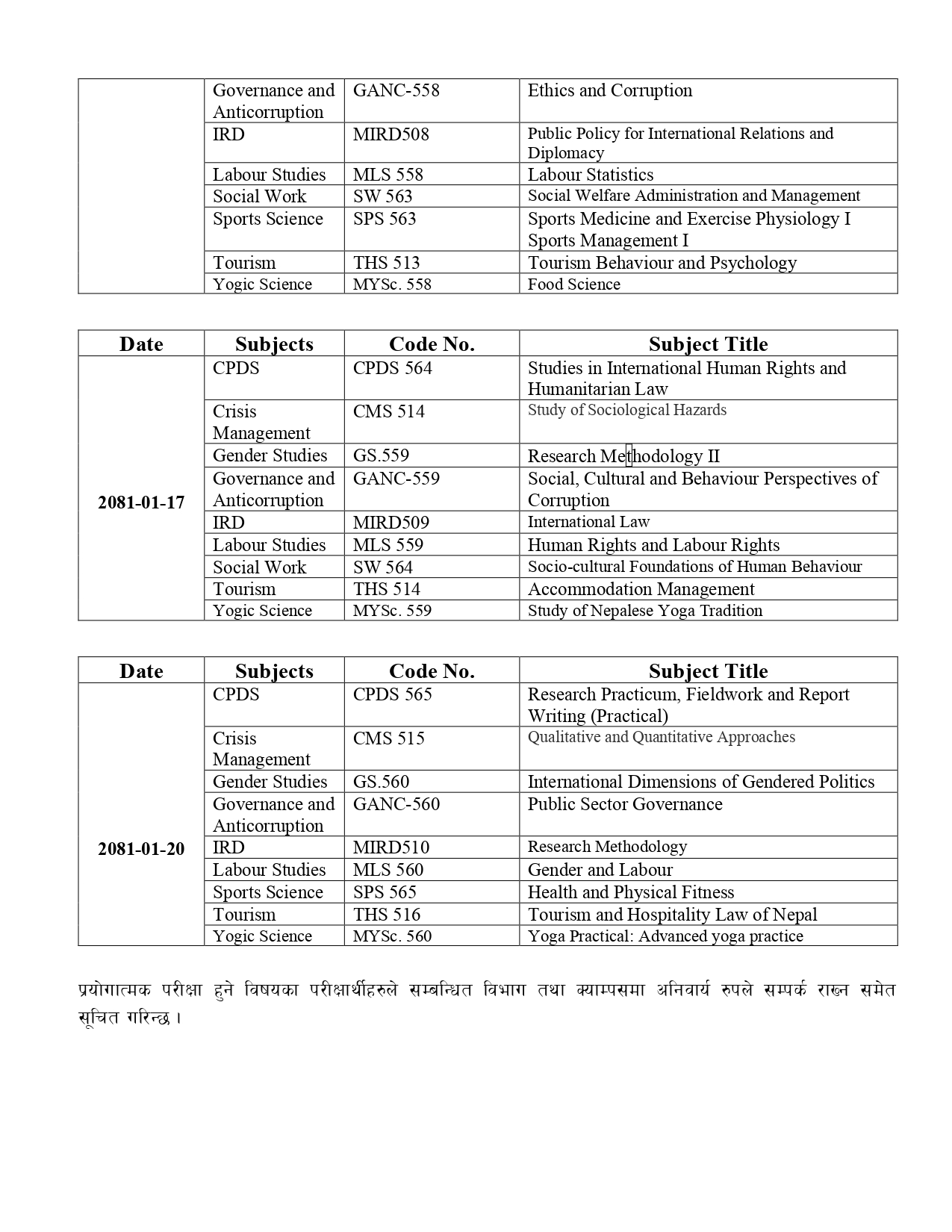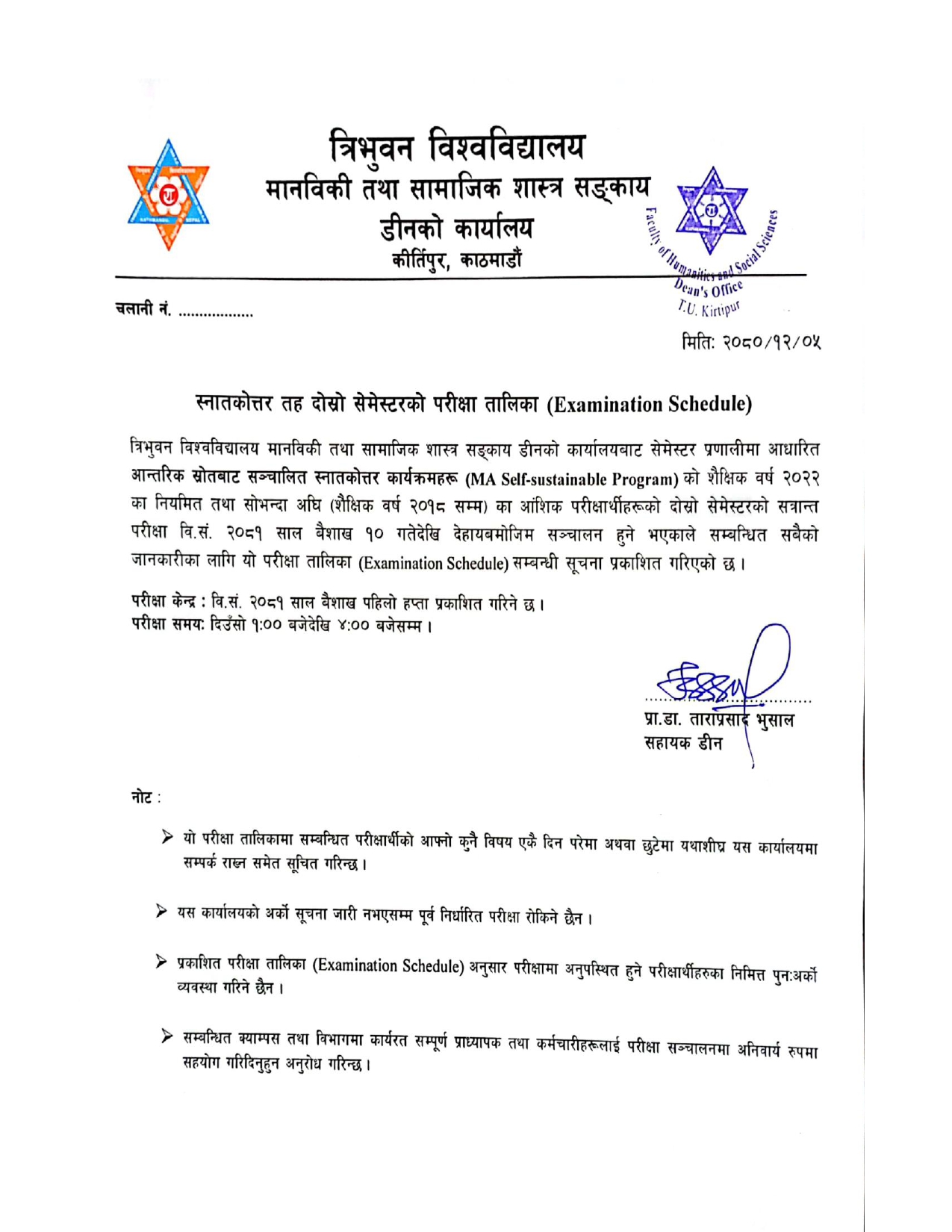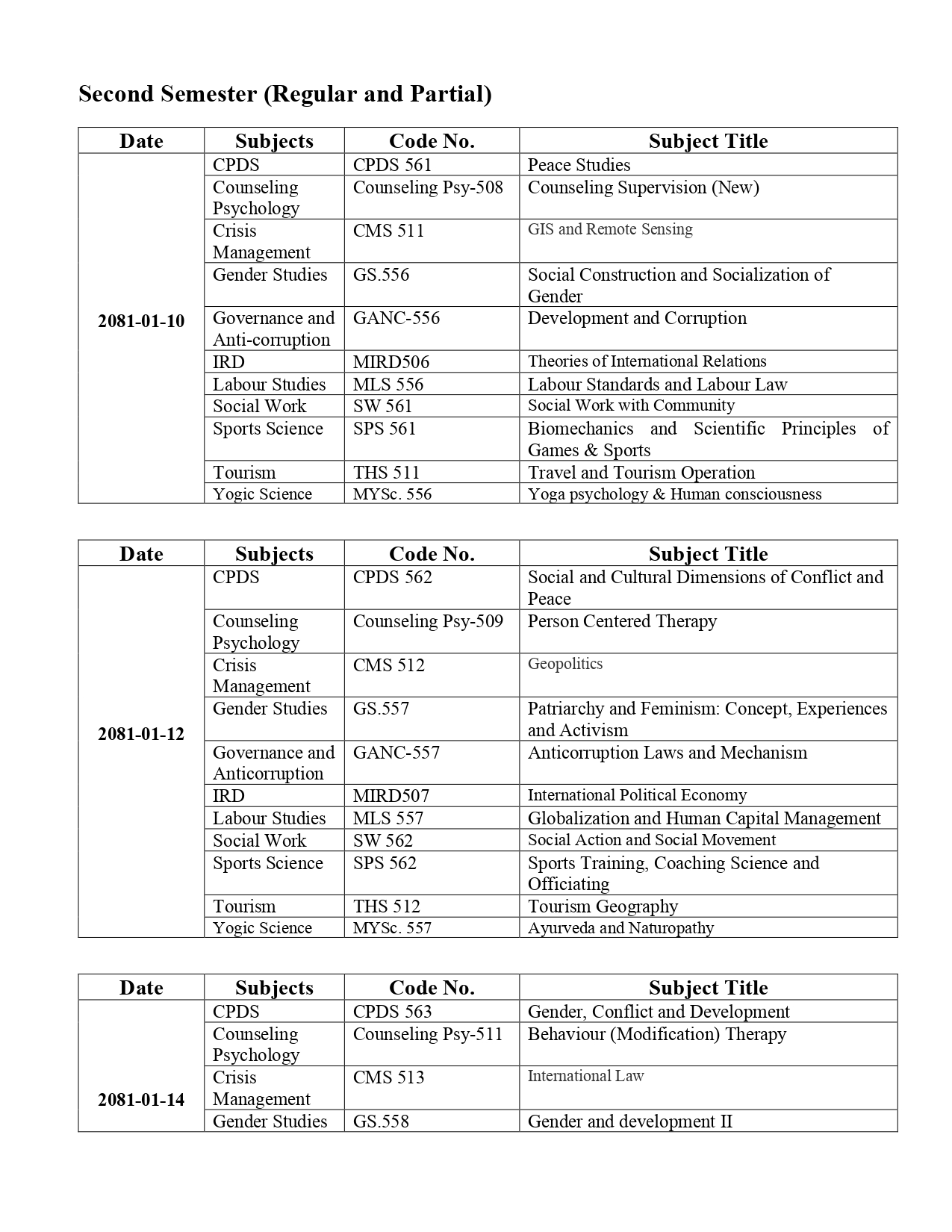 स्नातकोत्तर तह दोश्रो सेमेष्टरको परीक्षा तालिका (MA II Semester Examination Schedule)