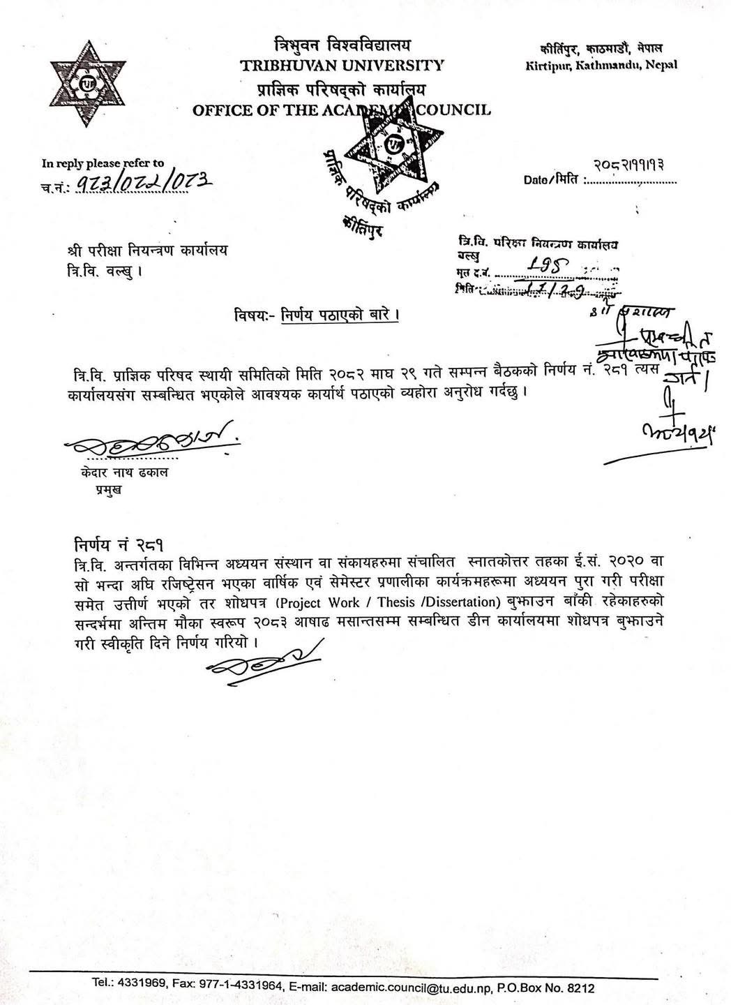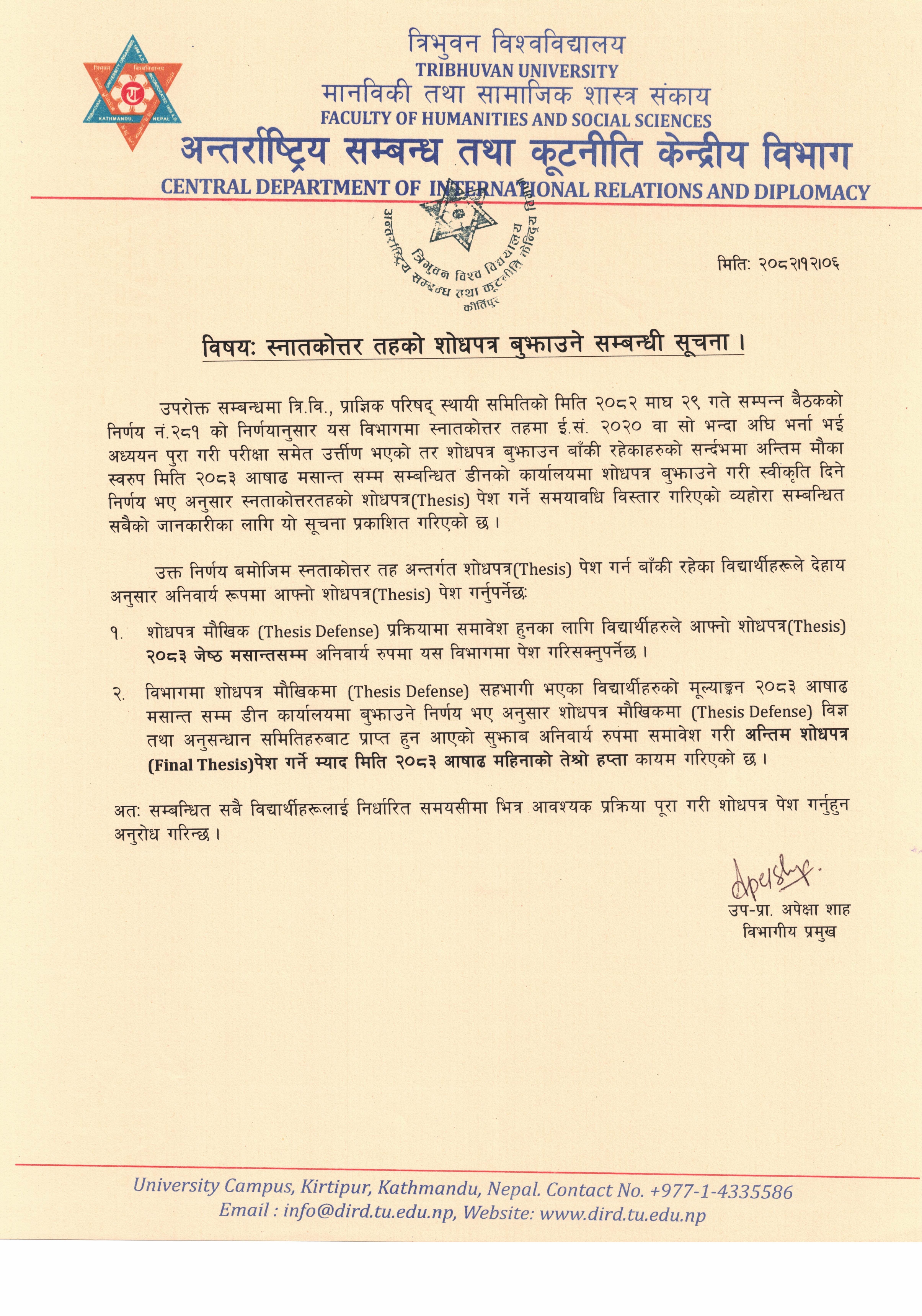स्नातकोत्तर तहको शोधपत्र बुझाउने सम्बन्धी सूचना !