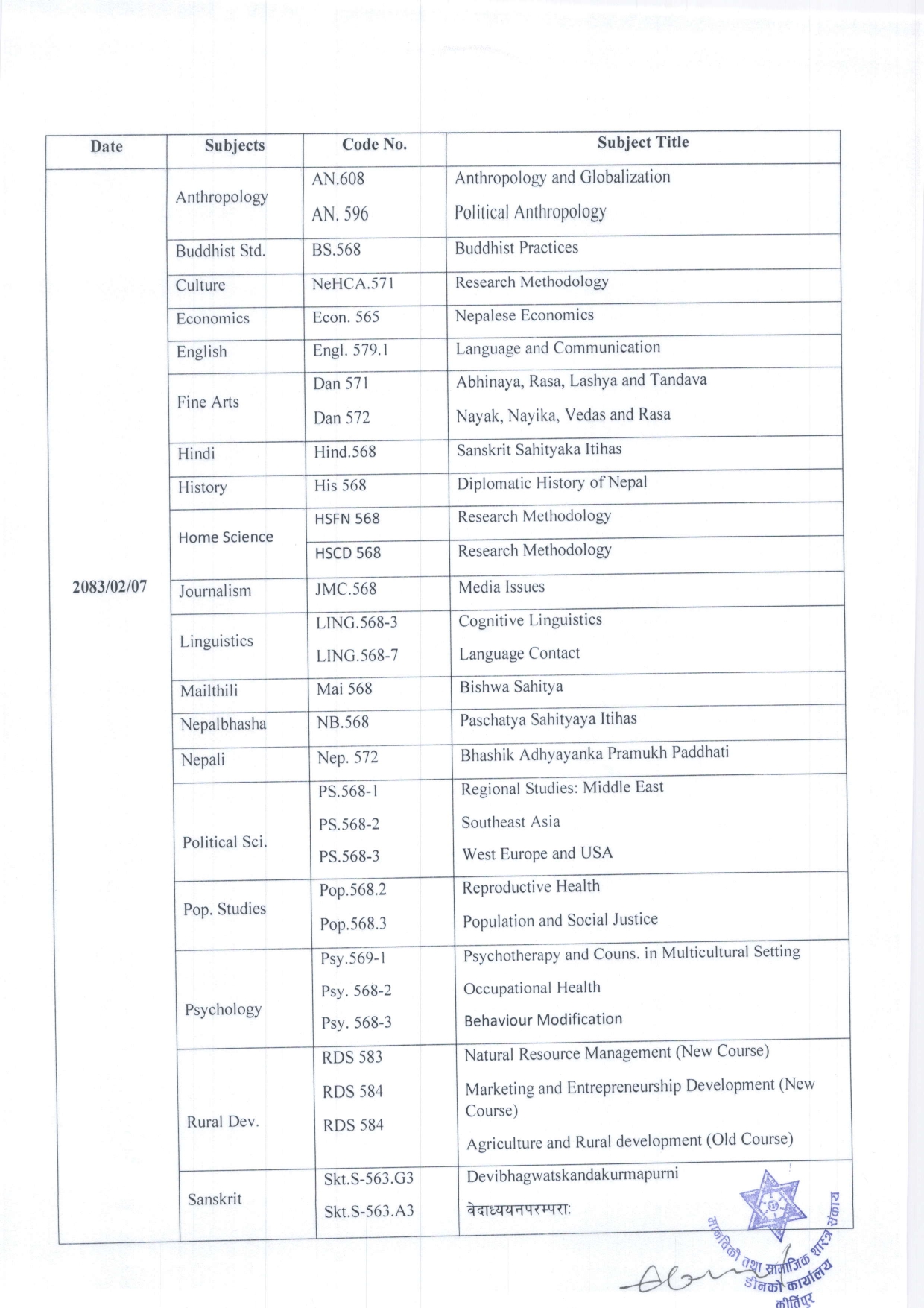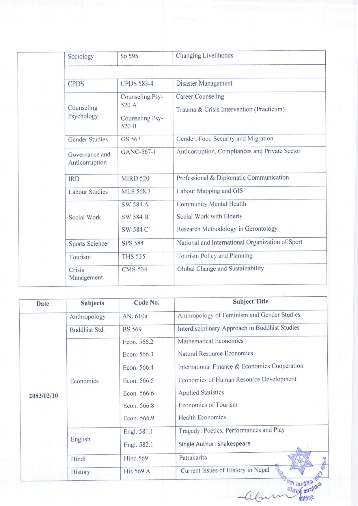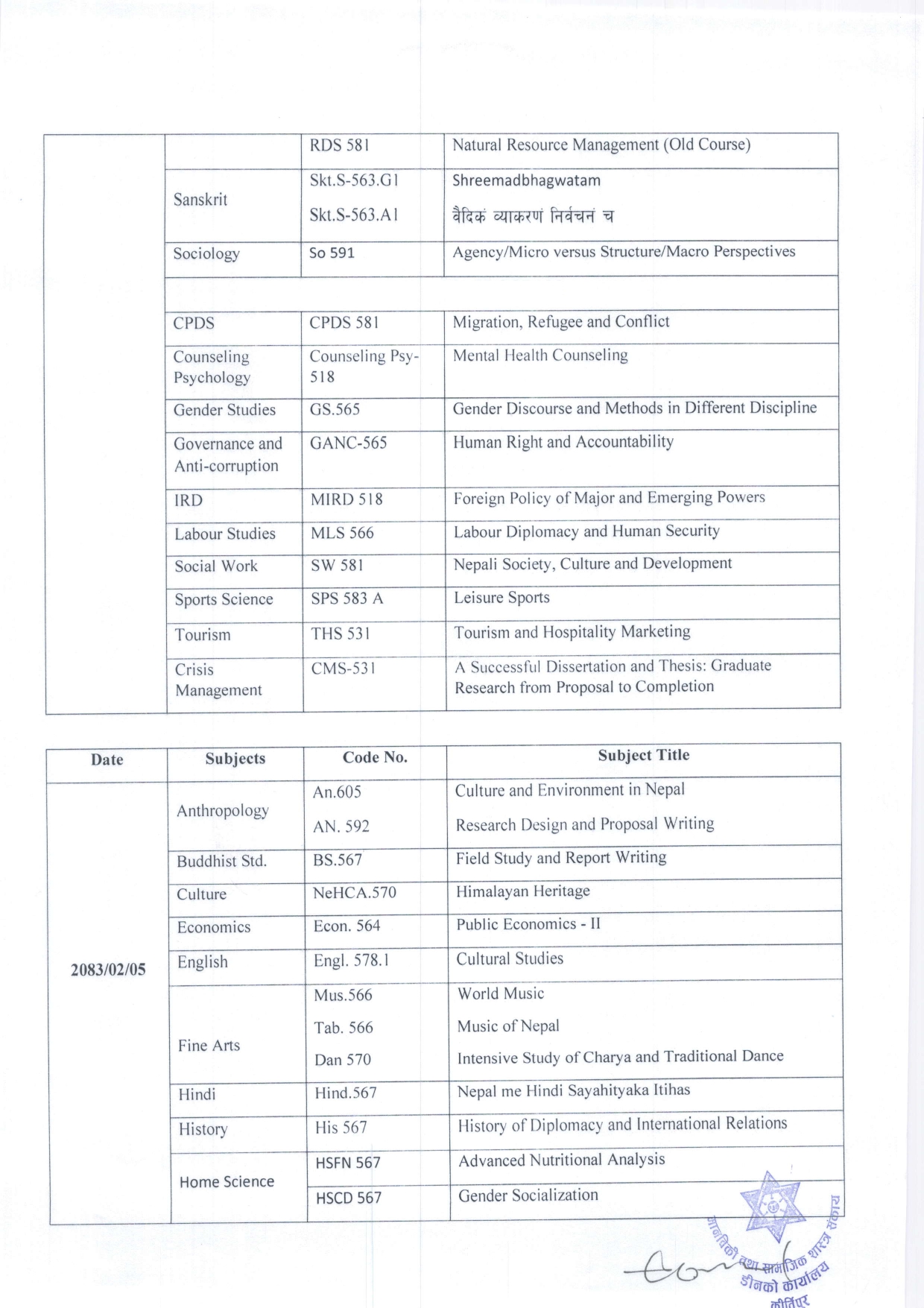 दर्शनाचार्य-विद्यावारिधि (MPhil-PhD) दाेस्रो सेमेस...