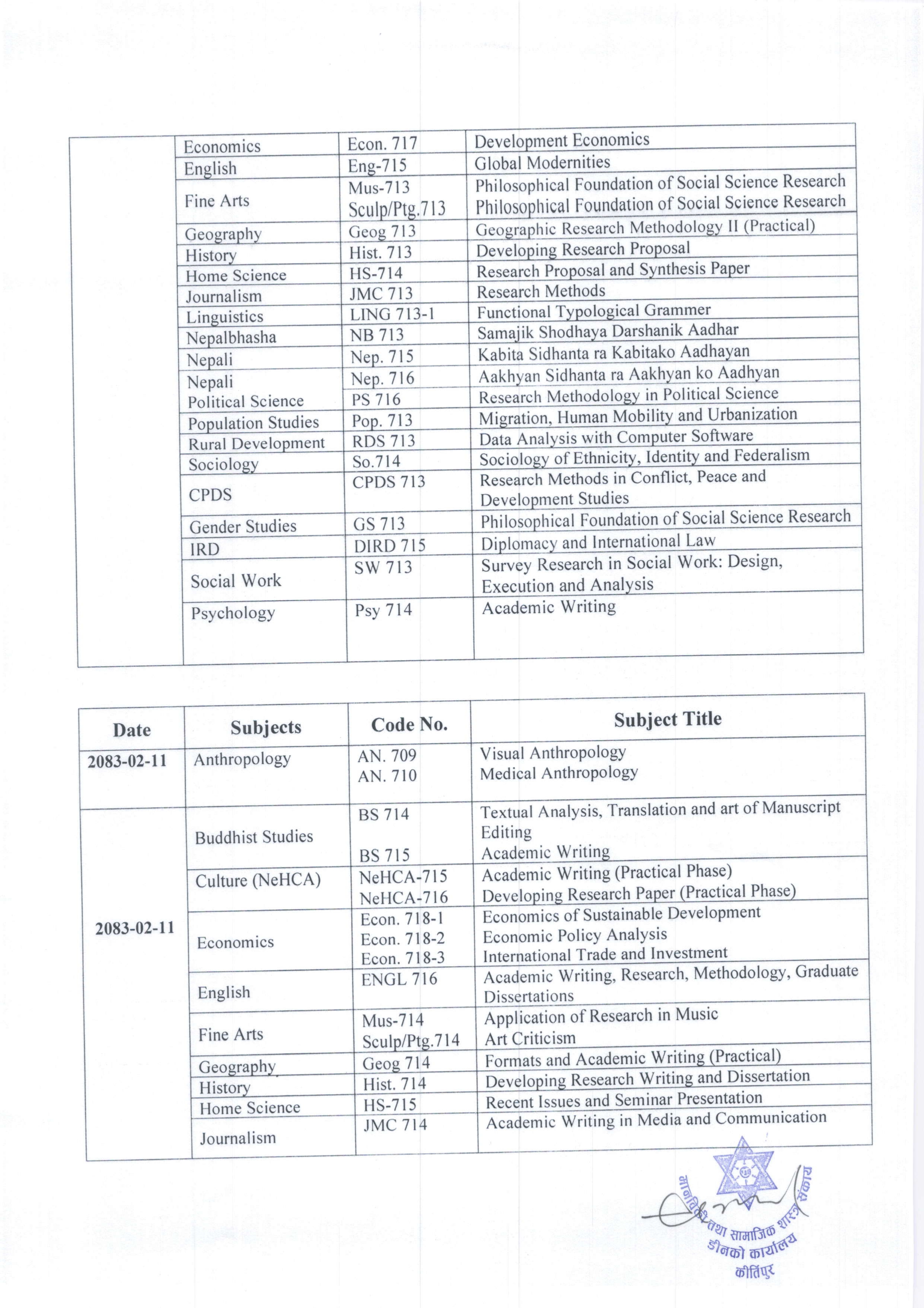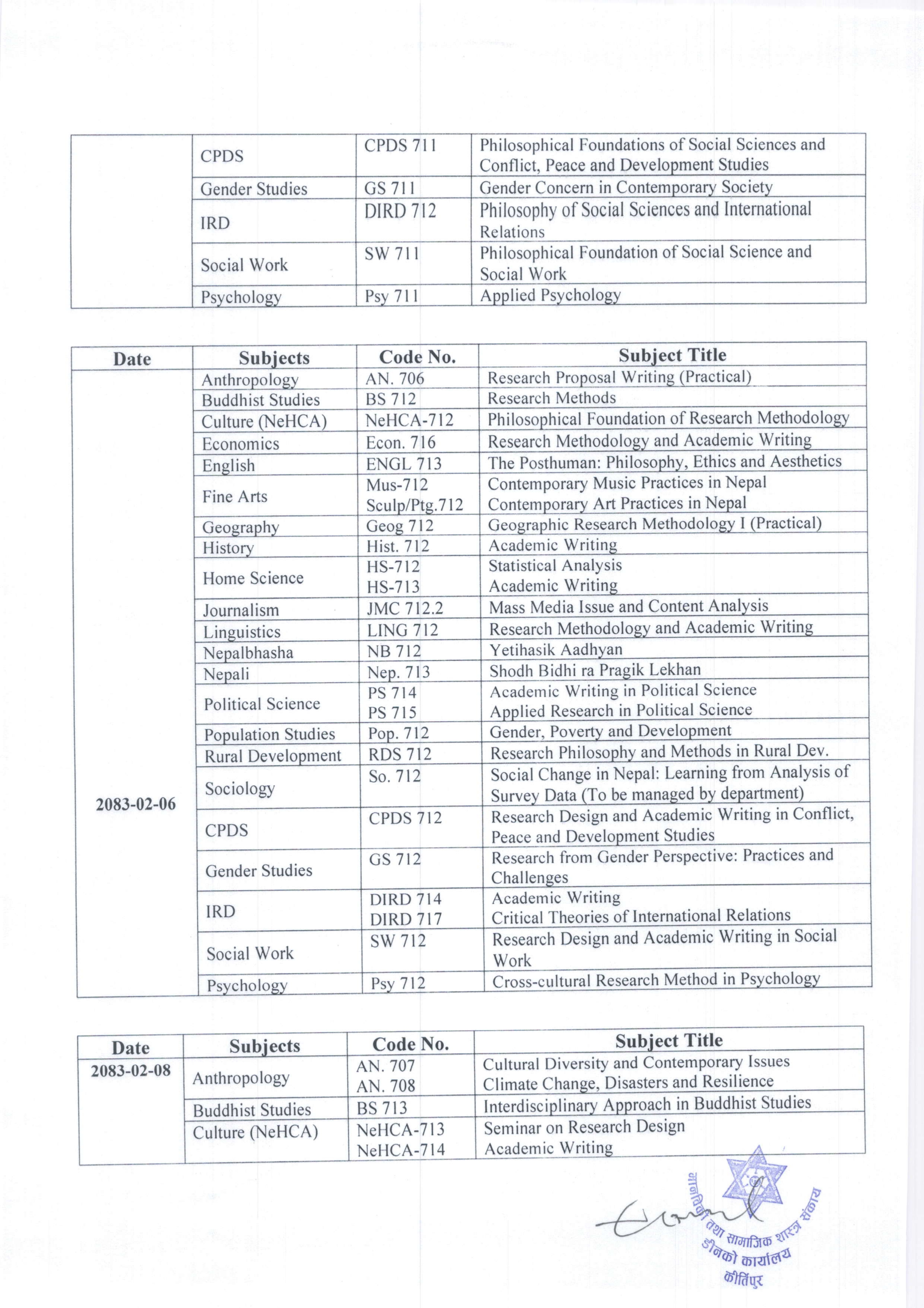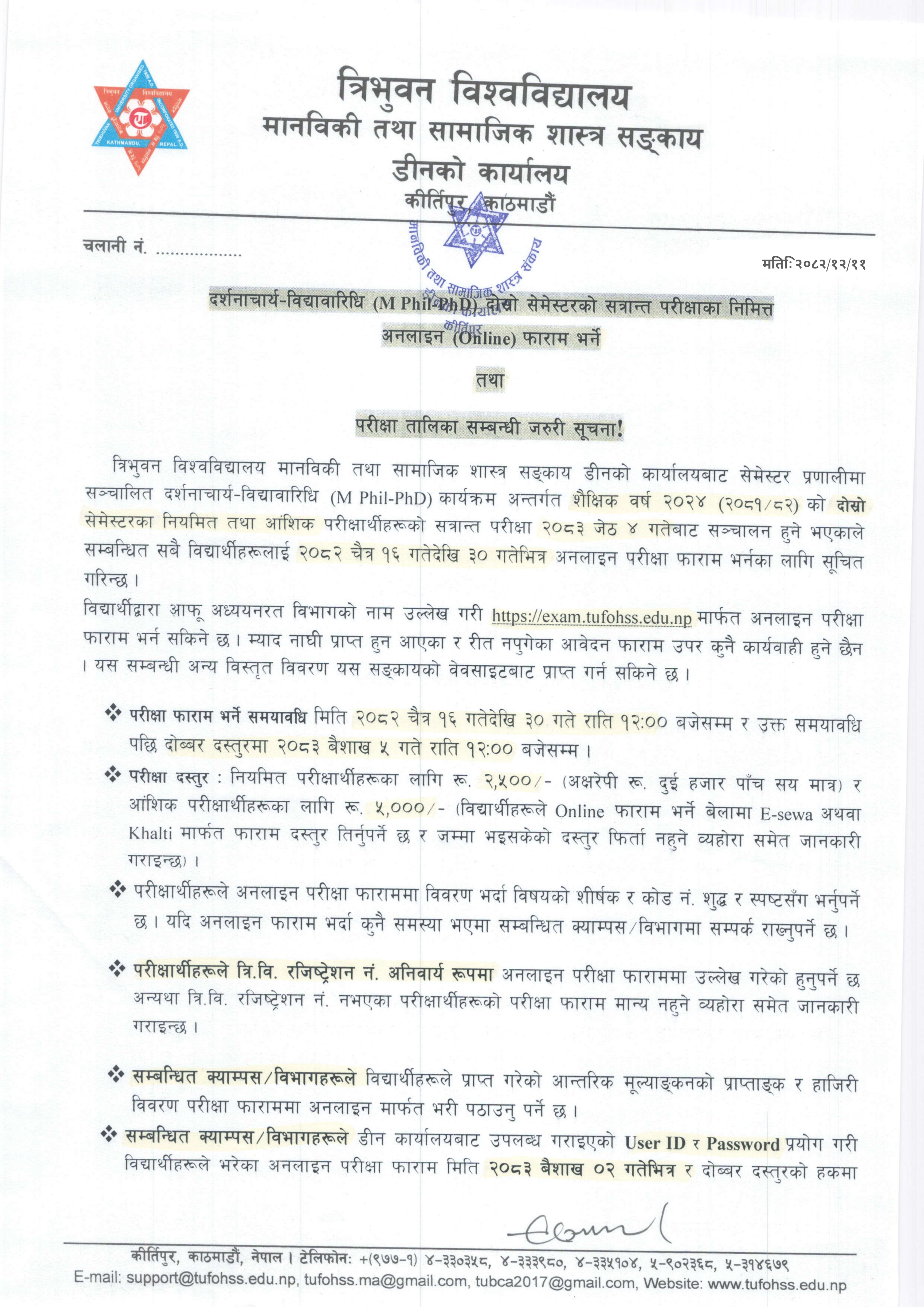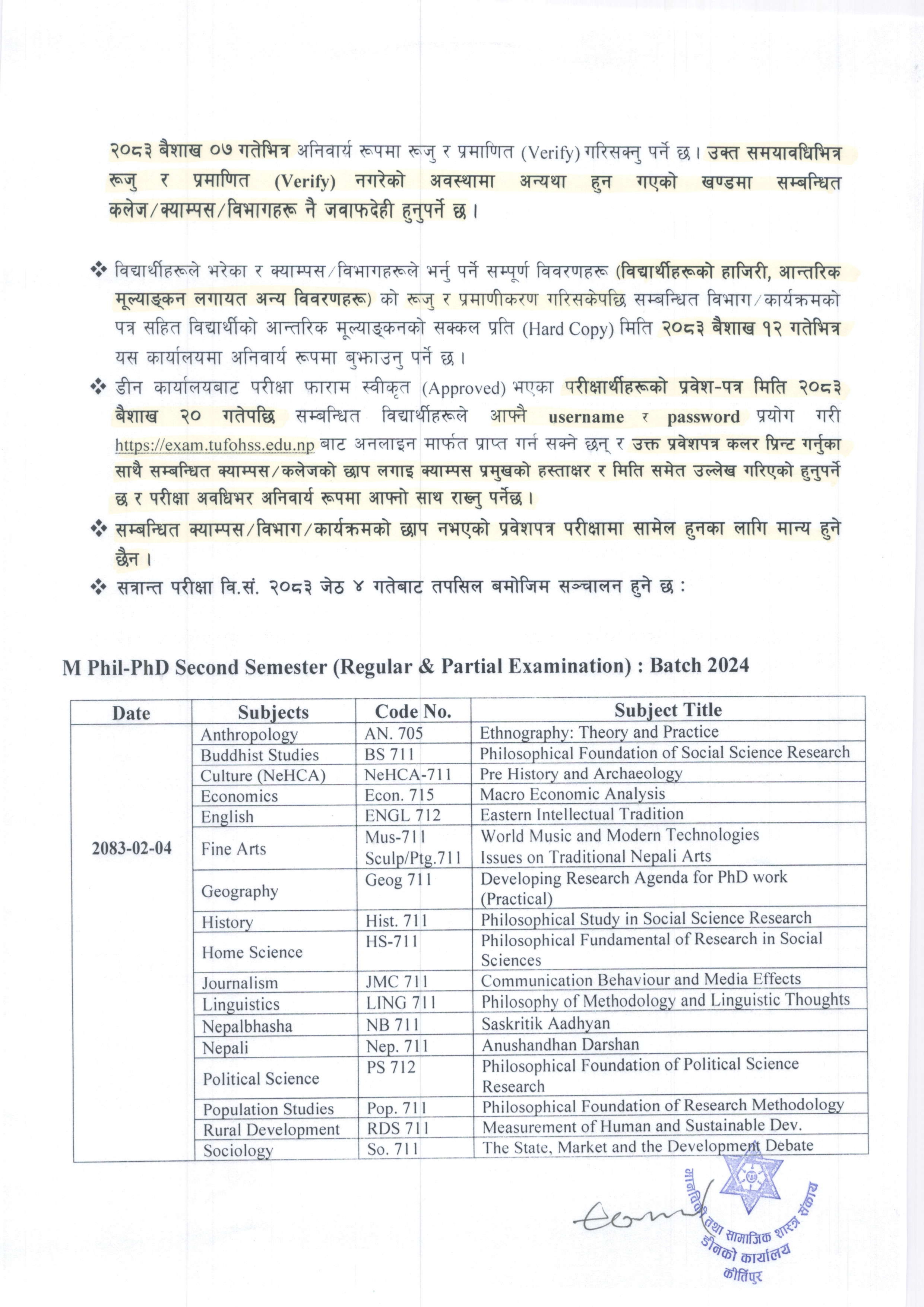 दर्शनाचार्य-विद्यावारिधि (MPhil-PhD) दाेस्रो सेमेस्टरको सत्रान्त परीक्षाको अनलाइन फाराम भर्ने तथा परीक्षाा तालिका सम्बन्धी जरुरी सूचना ।