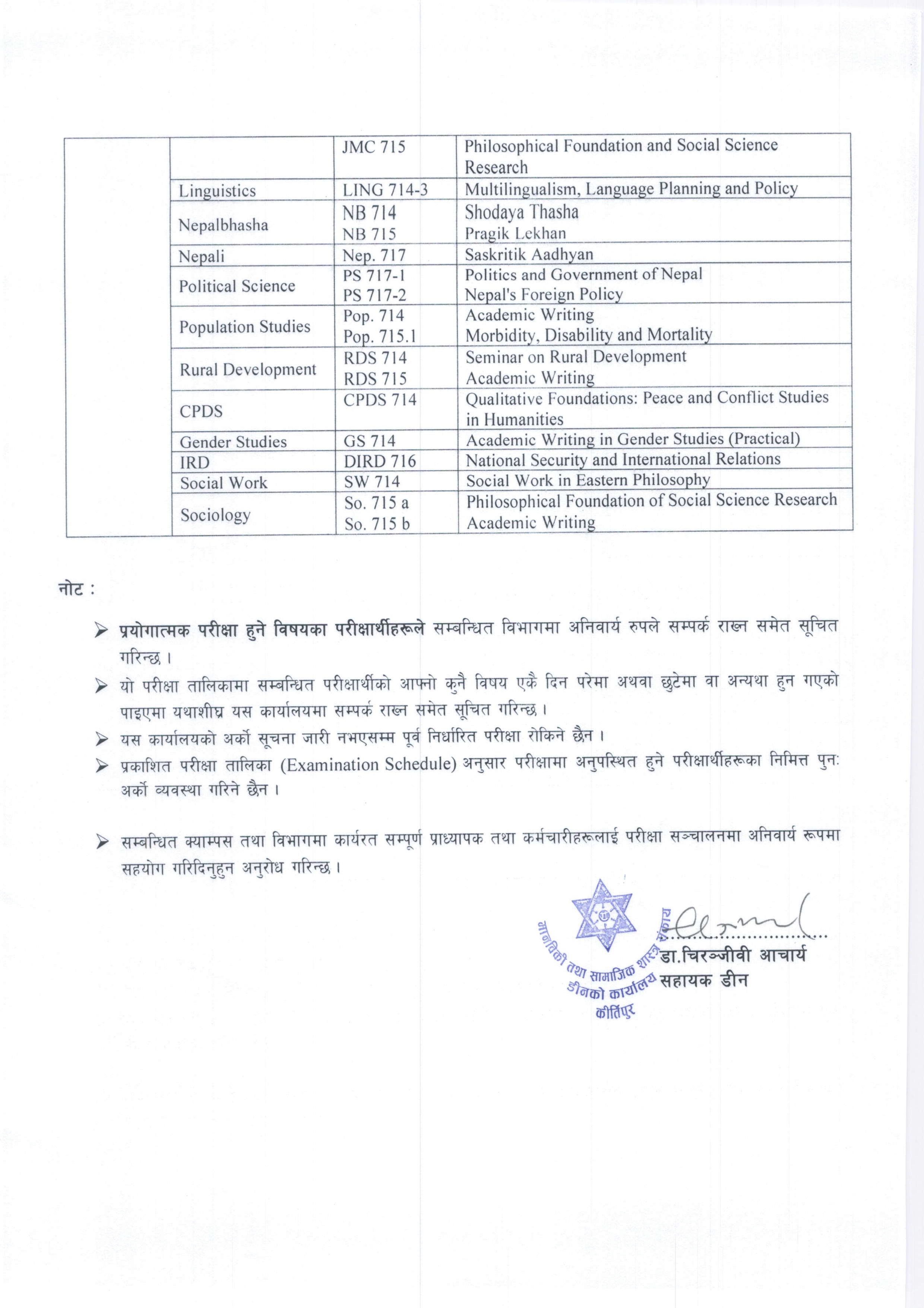 स्नातकोत्तर (MA) तह चौथौं सेमेस्टरको सत्रान्त परीक...